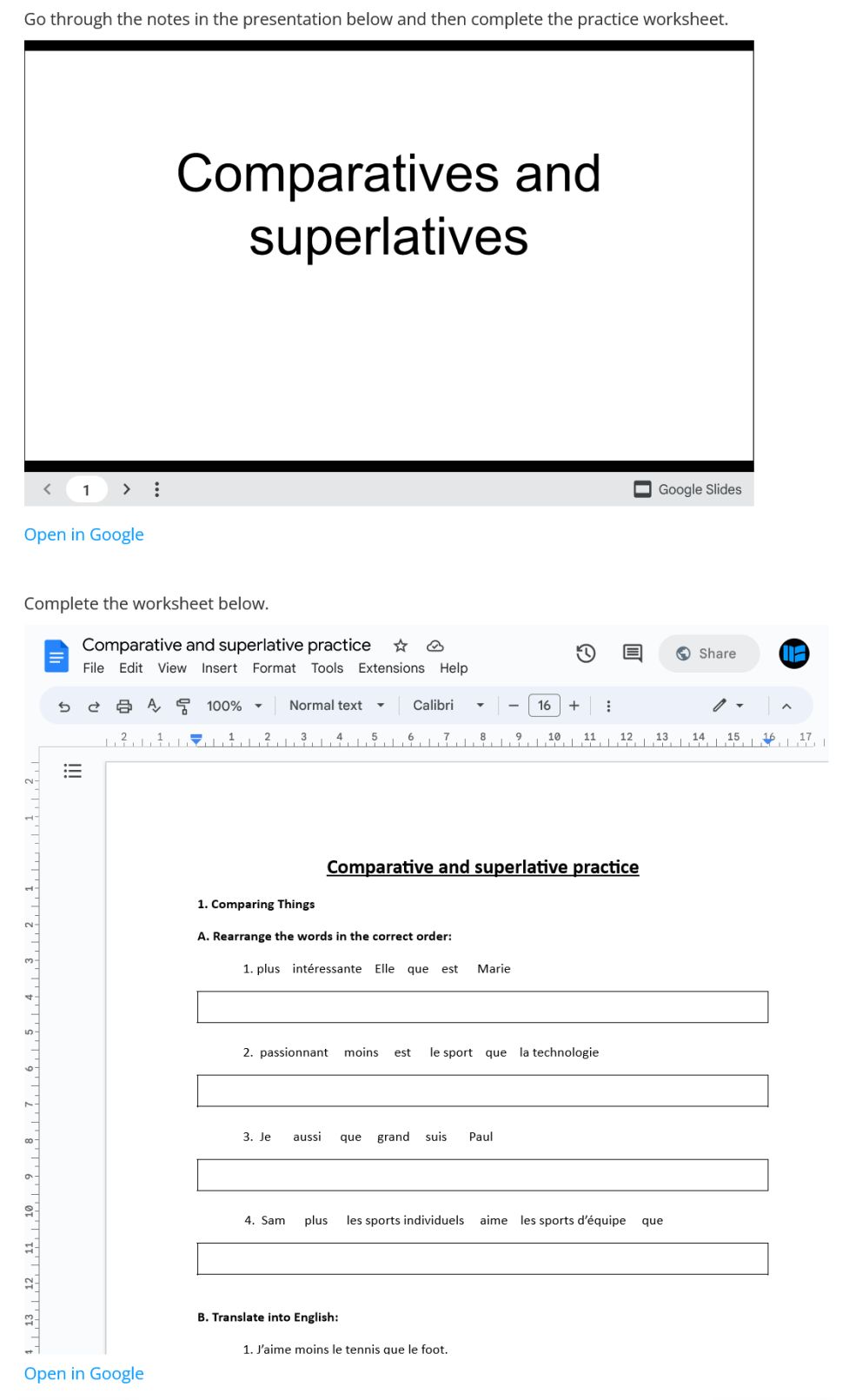 How to use comparative and the superlative in French.